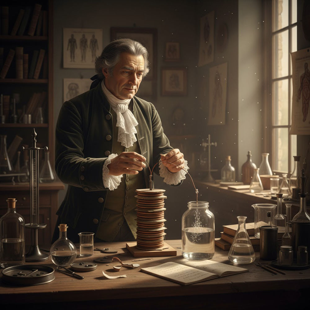 الکساندرو ولتا (Alessandro Volta)، فیزیکدان ایتالیایی، به طور رسمی اولین باتری واقعی را اختراع کرد.