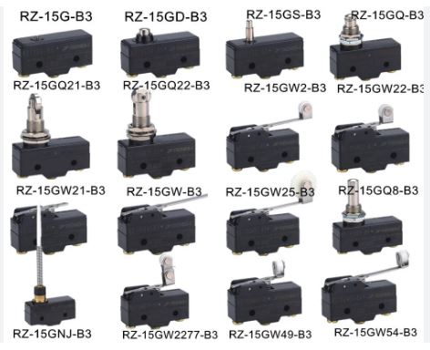 میکروسوئیچها از اندازهها و طرحهای مختلفی برخوردارند، که بسته به نوع کاربرد، انتخاب میشوند.