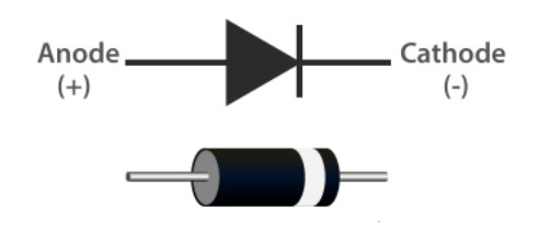 این قطعه اجازه می دهد تا جریان به راحتی در یک جهت جریان یابد، اما به شدت جریان را از جریان در جهت مخالف محدود می کند. دیودها به عنوان یکسو کننده نیز شناخته می شوند زیرا جریان متناوب (ac) را به جریان مستقیم ضربانی (dc) تغییر می دهند